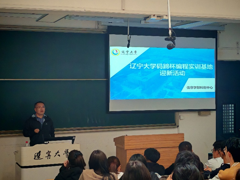 2025年10月10日辽宁大学码蹄杯编程实训基地迎新活动在崇山校区东阶梯101教室成功举办。本次活动由辽宁大学信息学部举办,由信息学部科创中心主任曲大鹏老师主持。