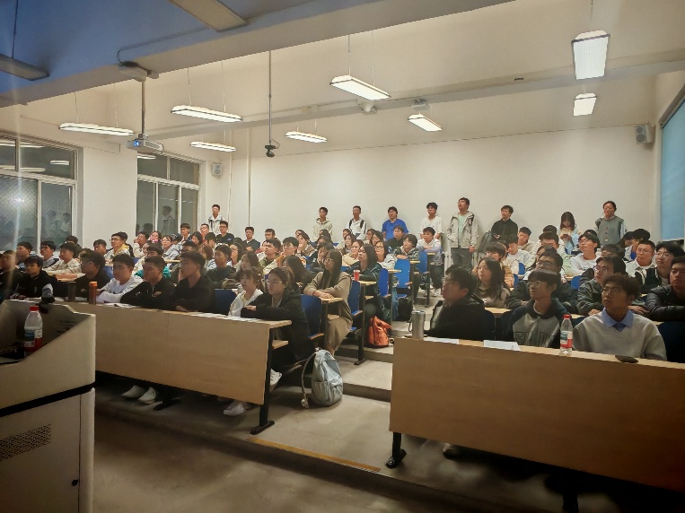 信息学部100多名学生齐聚现场,大家热情满满,满怀好奇。活动伊始,码蹄杯编程实训基地负责人曲老师介绍了码蹄杯编程实训基地的背景,包括实训体系、设备资源与学习路径,用通俗的语言勾勒出成长路线。互动环节里,同学们围绕基础编程问题积极提问,眼神里满是对新知识的期待,现场交流声不断,处处透着高涨的学习热情。